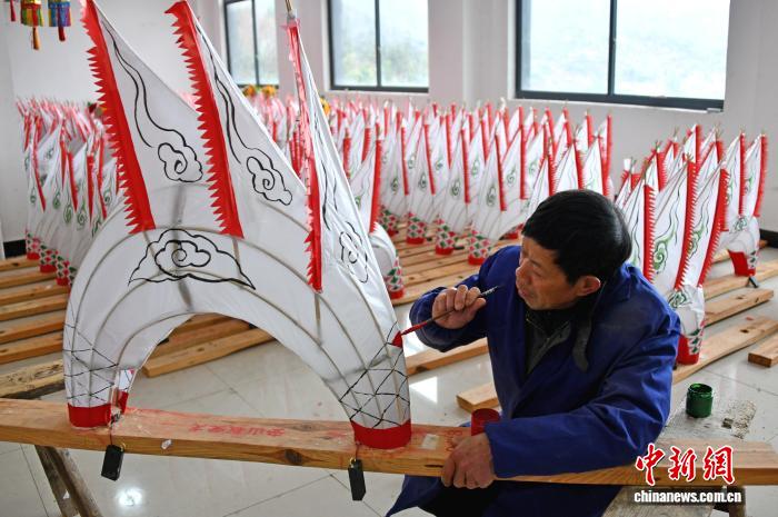 3 февраля, «Жэньминь жибао» онлайн -- По мере приближения праздника Весны жители деревни Аньшань уезда Сяньцзюй провинции Чжэцзян /Восточный Китай/ заняты изготовлением «скамеечного дракона» для новогоднего танца, в котором «тело» дракона составлено из соединенных между собой скамеек. Эта народная традиция в Аньшане насчитывает более 400 лет, сообщает сайт «Хуаньцюван».-0-