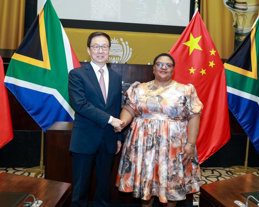 Хань Чжэн отметил, что законодательные органы являются важными поборниками развития межгосударственных связей, и Китай готов к дальнейшему укреплению межпарламентских обменов с ЮАР.