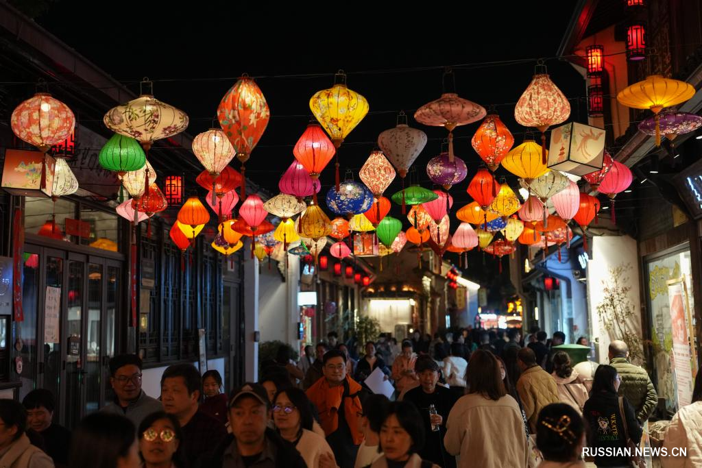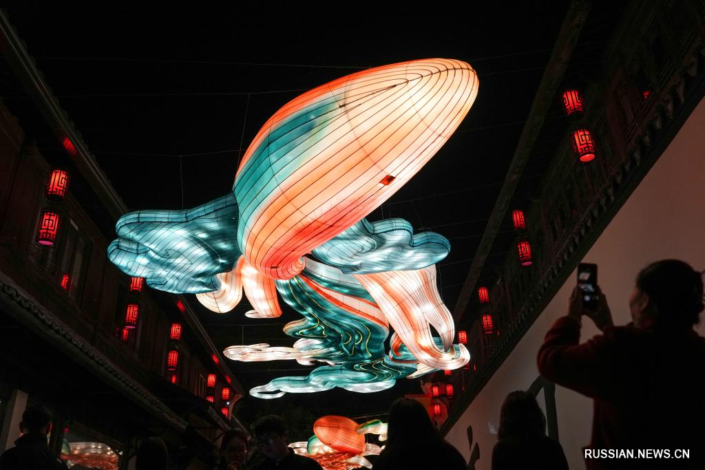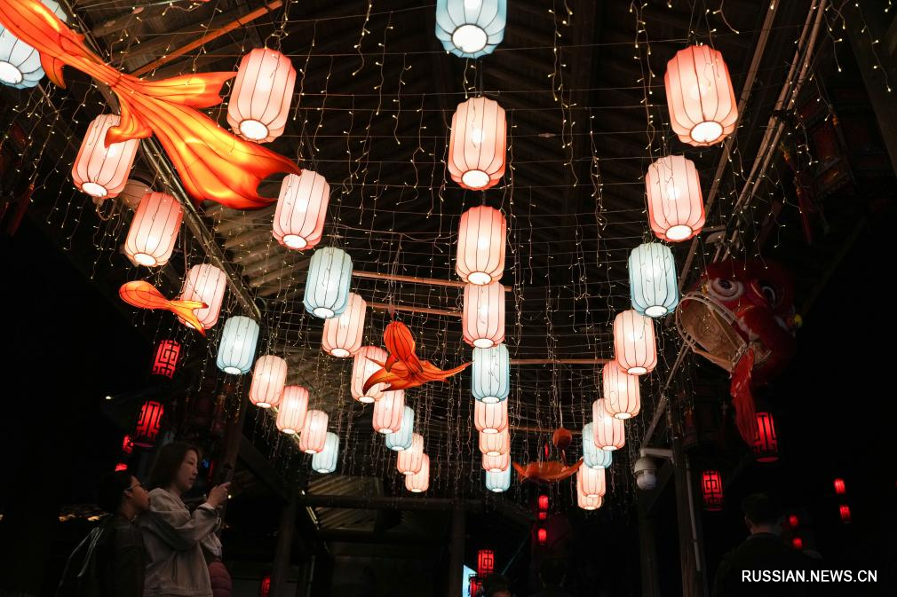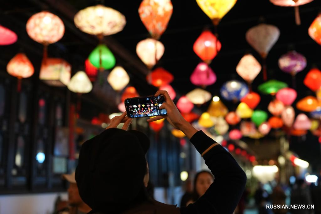 Жители и туристы наслаждаются фонарями во время каникул по случаю праздника Весны в Китае