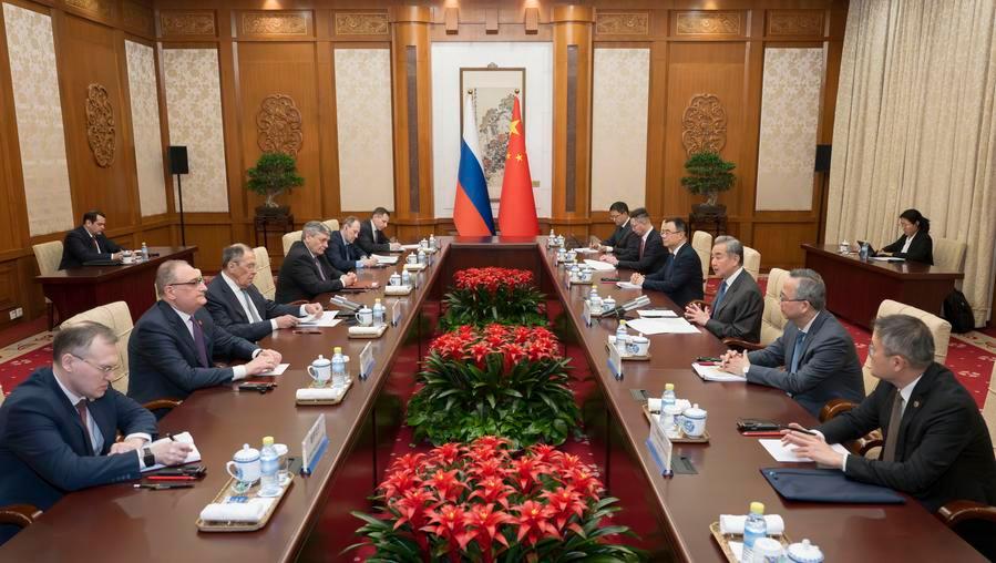 14 апреля, Пекин. Член Политбюро ЦК КПК, министр иностранных дел КНР Ван И проводит переговоры с министром иностранных дел РФ Сергеем Лавровым, прибывшим с визитом в Китай. /Фото: Синьхуа/